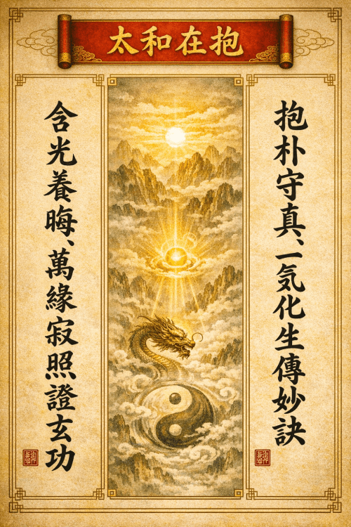 上聯:抱朴守真,一炁化生傳妙訣