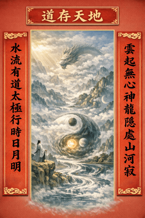 下聯:水流有道,太極行時日月明