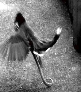 洪武初,至蜀太和山,結庵玉虛宮,自行修煉。洪武二十七年,復入湖北武當山,與鄉人論經典,孜孜不倦。一日在室讀經,有鵲在庭,其鳴如諍論。真人由窗視之,鵲在樹。注目下睹,地下有一長蛇,蟠結仰顧。少頃,鵲鳴聲上下,展翅相擊。長蛇採首微閃躲過鵲翅。鵲自下復上,俄時性躁,又飛下翅擊。蛇亦蜿蜒輕身閃過,仍作盤形。如是多次,真人出,鵲飛蛇走。真人由此悟,以柔克剛之理。因按太極變化,而成太極拳。