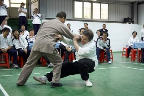 為加強以上的論述,我們可以再故技重施,試將你的手輕輕地盪至對方的身上,隨著對方因本能反應而趨前抗拒你時,一如前述,這時你的意念可透過神的內斂,以讓你的手在炁的延伸後,彷彿仍然徘徊在對方身上的接觸點,也就是在你回旋的剎那,藉著延伸的炁,瞬間即能讓已經被你拔根的對手應聲而起,騰空而出。我曾在一位從楊家改習道家傳統太極拳的學員身上體驗到這股不經意間併發的勁道,當時是他突然趨近我,要我試發他,而我對這突如其來之舉的本能反應結果,只能說我彷彿還沒來得及覺察究竟發生了啥事,對方已經被我拋出尋丈之外。事後他回想,也說不出所以然,但從此以後,他再也不敢主動趨前讓我發他了。